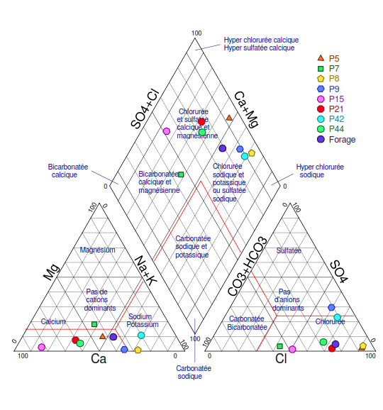 Diagramme Piper des faciès géochimiques des eaux souterraines de la zone d’étude